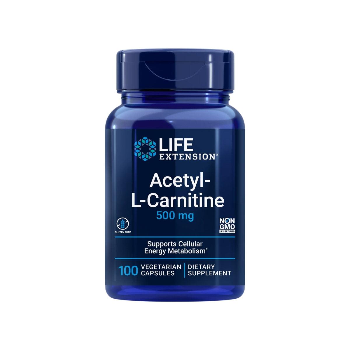 Acetyl-L-Carnitine (L-karnitin) fra Life Extension er er et derivat av aminosyrer som finnes i nesten alle kroppens celler. Dets viktigste rolle er å omdanne fett til energi ved å hjelpe til med å transportere fettsyrer inn i mitokondriene, cellenes energikraftverk.