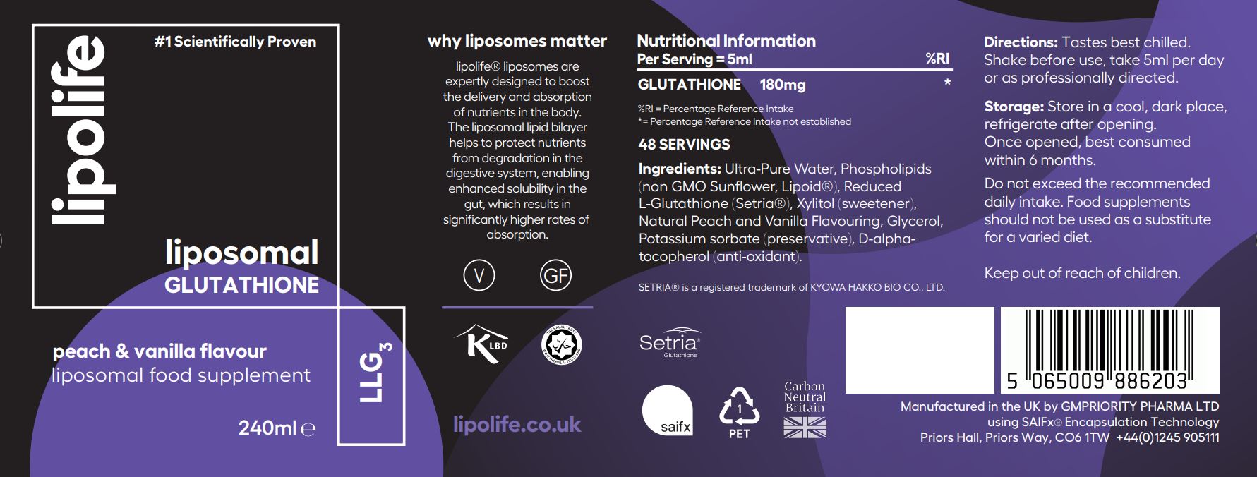 Kroppens primære avgiftningsmiddel er Glutathione. Glutationstatus i cellene er en veldig god indikator på generell helse - nivåene synker med alderen, toksisitet, og spesielt ved kronisk sykdom. En kraftig antioksidant, vanligvis dårlig absorbert, Lipolife® Liposomal Glutathione sikrer overlegen absorpsjon.